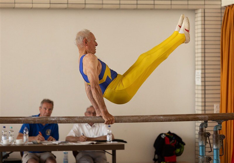 تصاویری از پیرمرد ۹۰ ساله ورزشکار منتشر شده که او با آشنایی به انجام اصول حرفه ای رشته ورزشی ژیمناستیک توجه همه تماشاچیان را به خود جلب کرد.